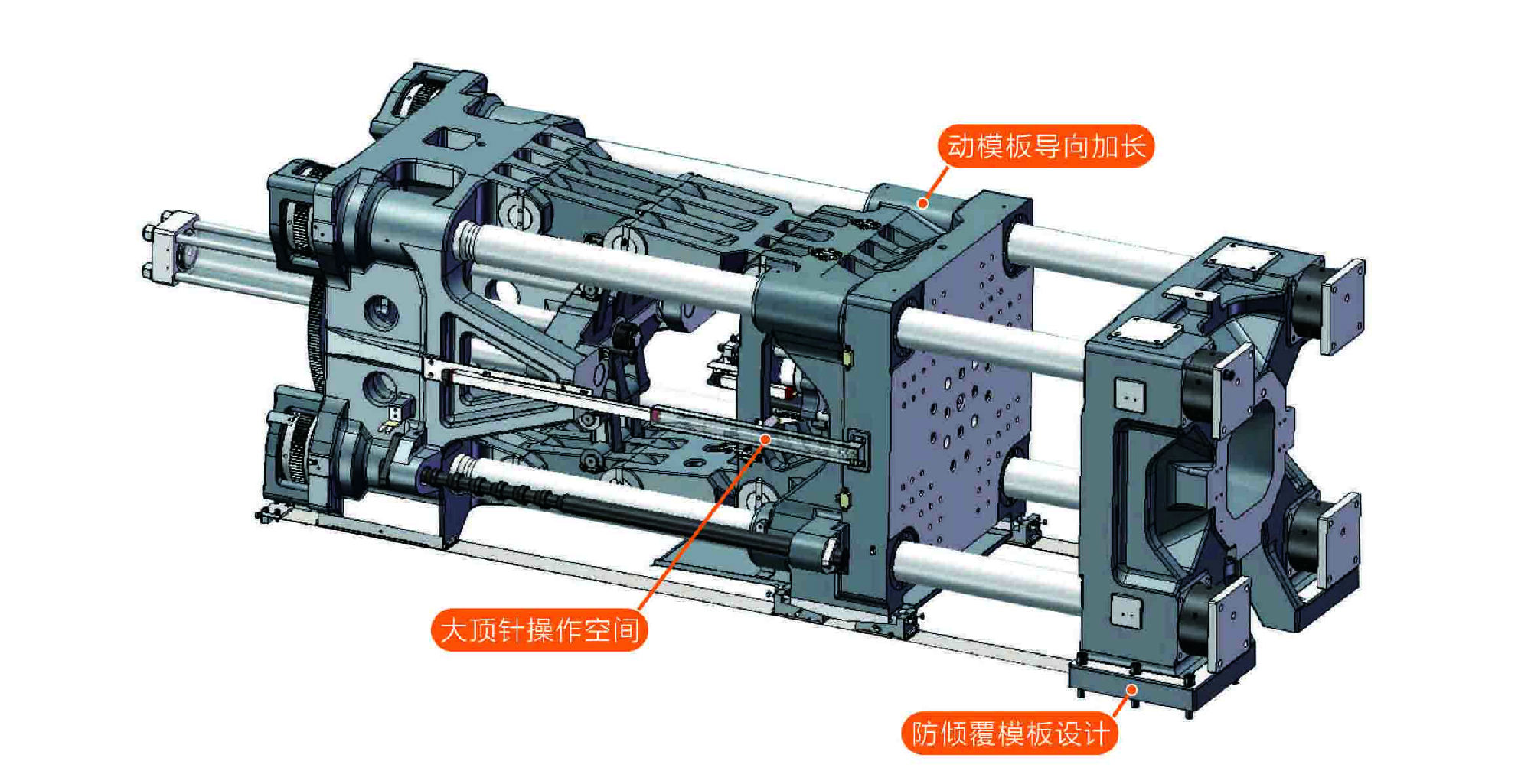 配合薄壁包裝模具要求,進一步加強鎖模機構(gòu)剛性。