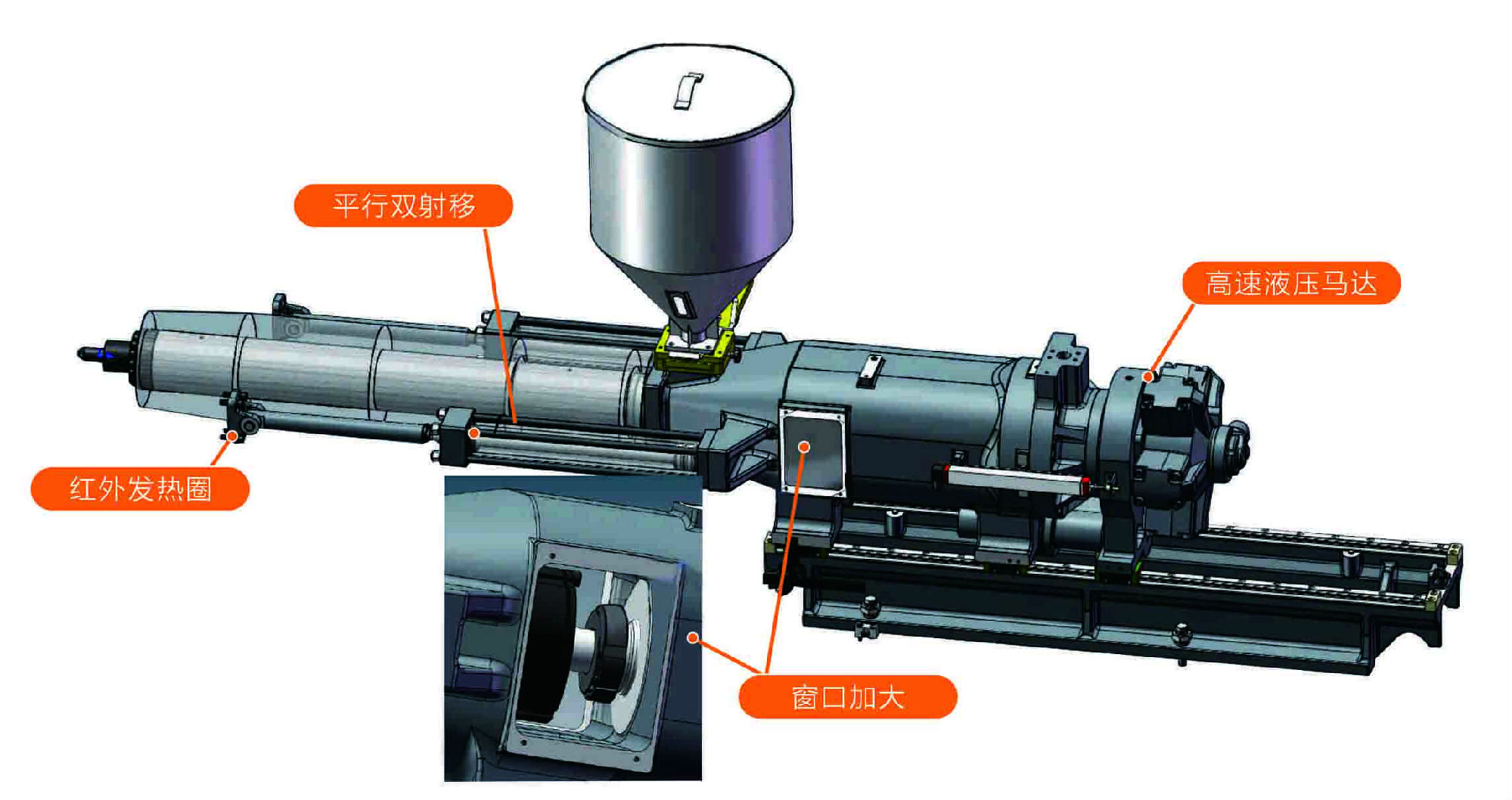 強化鎖模系統(tǒng),強度剛度合模力提升15%-20%。