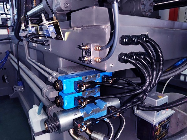 優(yōu)化傳統(tǒng)雙缸射臺設(shè)計,采用拱形一體式射臺座,取消傳統(tǒng)兩點(diǎn)支撐,提升射臺整體剛性,射臺動作更加平穩(wěn)。射臺油制控制部分直接連接射膠油缸,提高動作響應(yīng)。(320噸以上機(jī)器配置雙射移裝置)